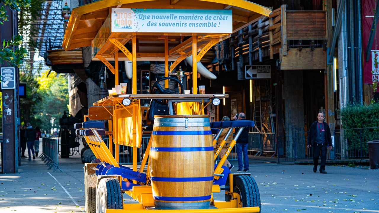 En balade ou en stationnaire, Le Gros Vélo s’adapte à vos besoins : animation d’équipe, point de rencontre, bar éphémère ou support de communication marketing événementielle. Il peut également être personnalisé à votre image, pour porter vos messages et valoriser votre marque.